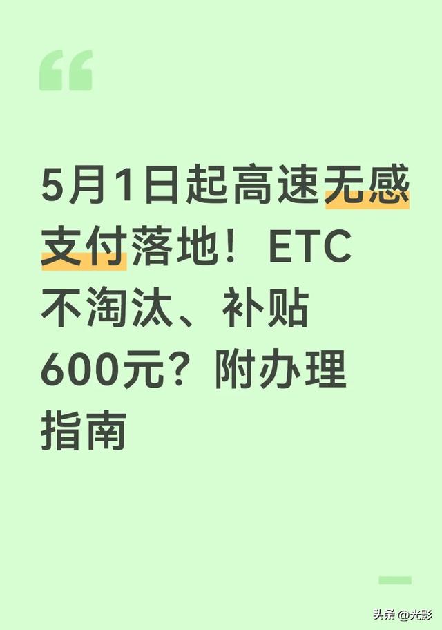 各位车主注意啦!从今年5月1日开始,全国高速要迎来大变化了——高速无感支付正式落地,不用装ETC也能不停车过站,而且官方明确说ETC不淘汰,这可是实打实的便民福利!不过最近网上传的“补贴600元”到底是不是真的?今天我就结合权威政策,用大白话给大家讲透,还附上详细办理步骤,看完你就全清楚了~